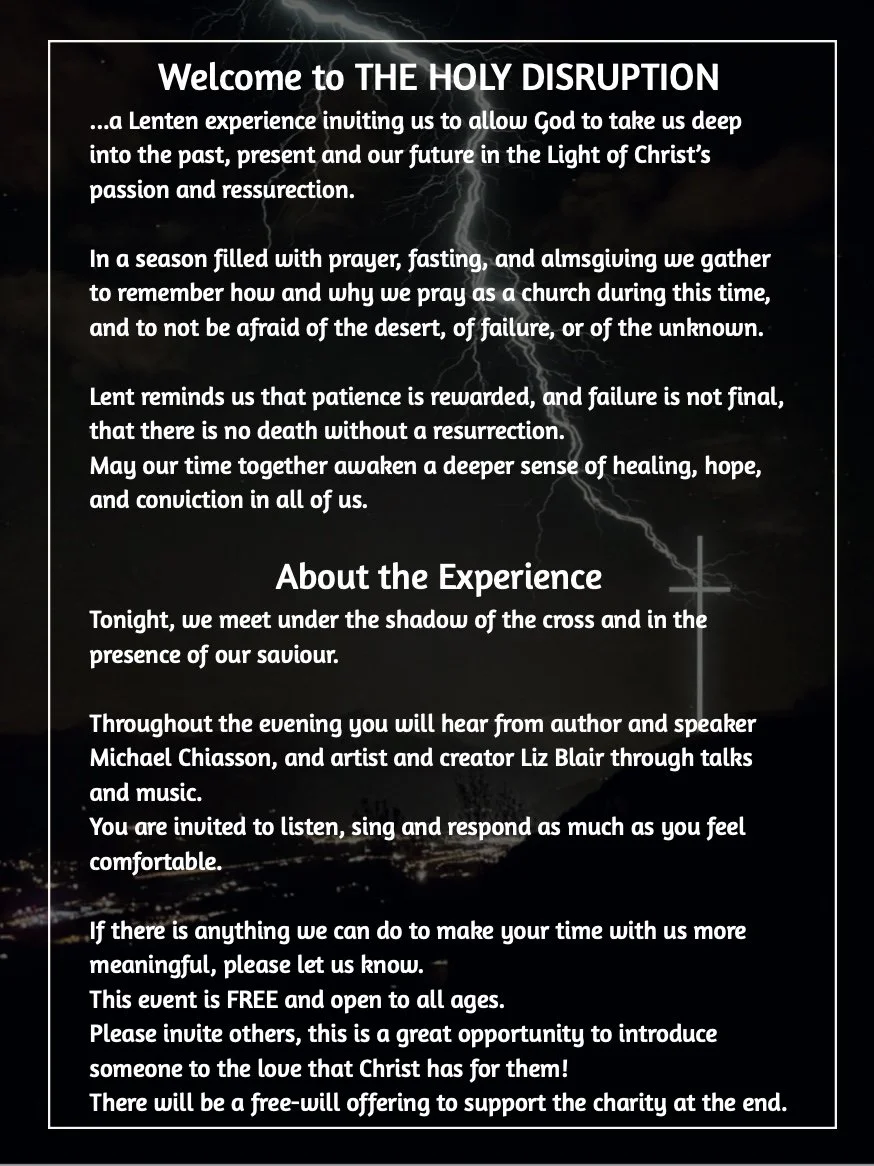 LENTEN Experience - THE HOLY DISRUPTION - Friday, March 27th - 6:30 St. Mary's Catholic Church -